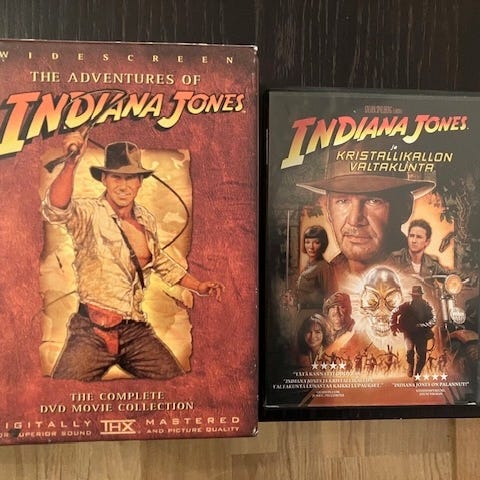 Indiana Jones elokuvat (1-4) erittäin hyvässä kunnossa.