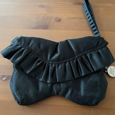 Tiia Vanhatapion musta/pinkki iltalaukku. Aito laukku, uudenveroisessa kunnossa.
