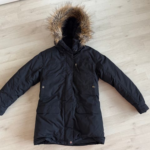 Todella hyväkuntoinen laadukas untuvatakki, parka-malli, irroitettava huppu, kiristysnyöri helmassa, vetoketjullinen povitasku, virheetön ja juuri pesetetty takki. Väri punainen, koko S