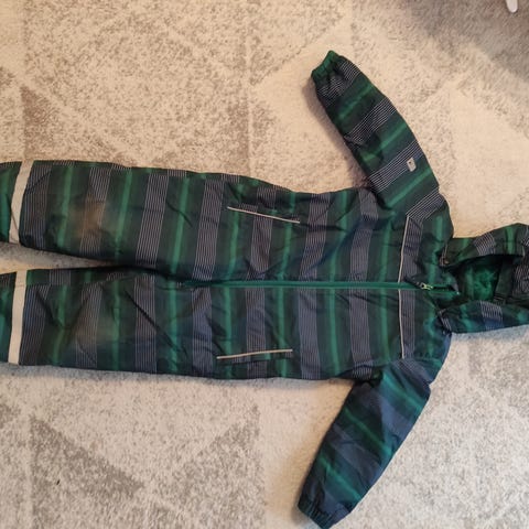 Sammalenvihreä Peuhun toppahaalari kokoa 120cm (reilu koko), heijastavilla yksityiskohdilla. Kerran käynyt päällä, ja jäänyt pieneksi sekä käyttämättömäksi.