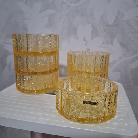 Eero Rislakin suunnittelemat Lara tarjoilukulhot 6kpl, korkeus 7,0cm, halkaisija 20,0cm. Mäntyharjun lasia.