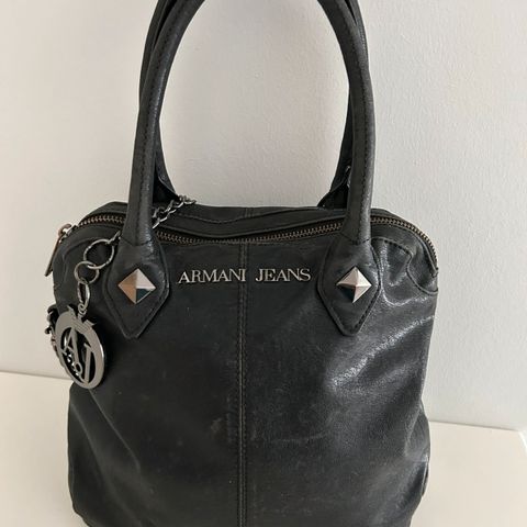 Armani Jeans olkalaukku mustassa värissä. Laukku on valmistettu laadukkaasta nahasta ja siinä on tyylikäs metallinen lukko. Sisäpuolella on pistekuvioitu vuori ja useita taskuja pienten tavaroiden säilytykseen. Laukku on käytännöllinen valinta jokapäiväiseen käyttöön.