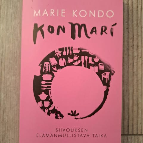 Pehmeäkantinen kirja, Marie Kondo: Kon Mari - Iloa säkenöivä järjestys, 299 sivua, kannessa jotain pientä taitosta, muuten erittäin siisti, nouto tai postitus.
