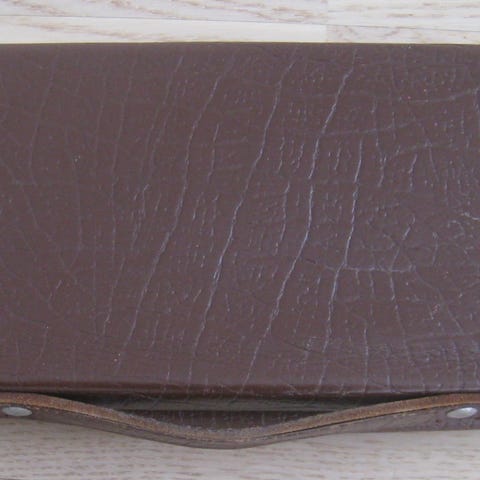 Lue kuvien tekstit. Tämä huonosti kohdeltu, käsityönä valmistettu salkku tarvisi näppärää, luovaa ihmistä saadakseen vielä olla ihailtavana! Keksitkö sille käyttöä taiteeseen, teatteriesitykseen tai muistoartikkeleiden säilyttämiseen? Korjaus onnistuu liimaten vaikka ohuella puulastulla. Vai laittaisitko hyviin kehyksiin uudet kuoret nahkasta, kankaasta ym.? Runko-osat ovat kunnossa. Salkun mitat ovat: leveys 43cm; korkeus 32cm ja pohja on n. 5cm leveä. Kurkkaa muutkin Tori-ilmoitukseni (mm. vintagea, keräilytavaraa, figuureita, nukkeja, merkkejä, astioita, jalkineita, vaatteita, metallitavaraa), saatat tehdä vaikka löytöjä. Odotan tilauksia. Samassa paketissa useampi tuote kohtuullistaa postikuluja.
