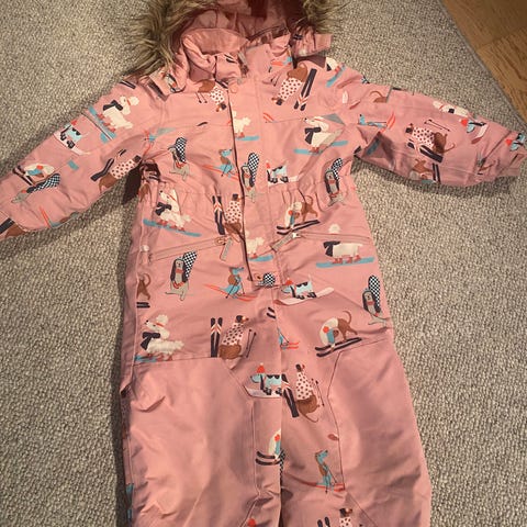 Hust and claire 104 cm haalari. Enemmän oli käytössä. Karva hupussa ei enää missään parhaassa kunnossa. Mutta saa onneksi nepeillä irti.
