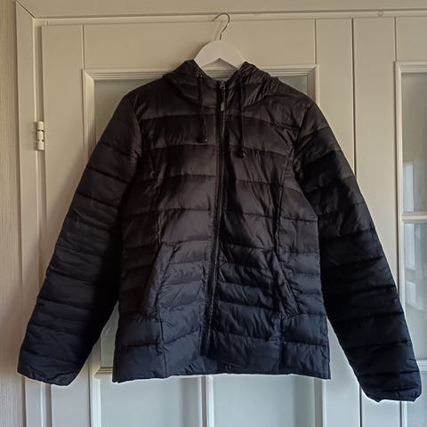 Vaaleanharmaa pehmoinen Torstain kevyttoppatakki koko 38. Vastaa noin S. Kapeahko malli ainakin vyötärön kohdalta. Pinkinväriset tehostesaumat ja pilkullinen hupun vuorikangas.