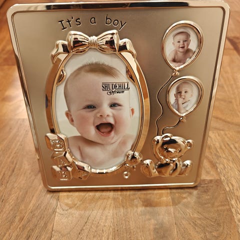 Kultakeskuksen valokuvakehys hopeaa.