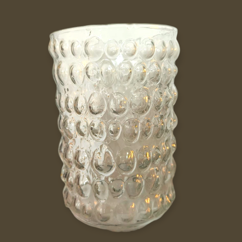 kirkasta lasia, korkeus 12cm, halkaisija ulkomitta 8cm.