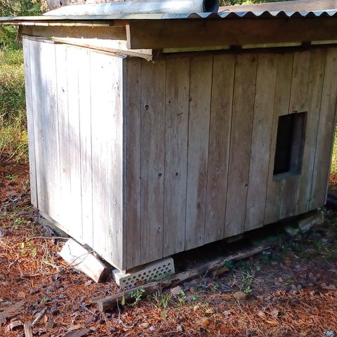 Ulkomitat: leveys 66cm, pituus 86cm, harja korkeus 84cm, lappeen pituus 126cm, kulkuaukko 27cm jossa luukku, jonka saa helposti pois. Sisällä eriste pohjalla, kumimatto päällä.