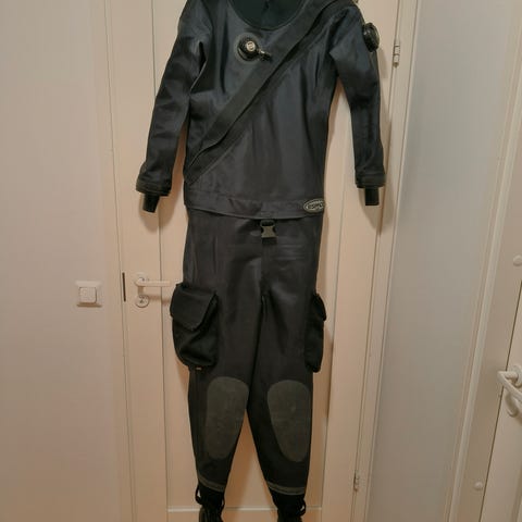 Poseidon merkkinen käyttämätön loistava kuivapuku kokoa ML. Täyttöventtiili puuttuu.