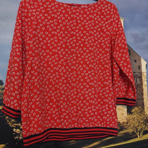 My Affection merkkinen punainen pitkähihainen paita. Tämä on pitkä paita malliltaan ja reunoilta paita on vielä pidempi kuin keskeltä. Kiva erilainen värikäs liehupaita. Naisten malliston pitkähihainen paita koko S. Tämä on hyväkuntoinen käytetty paita. Kiva työpaita toimistoon jollekin pienelle naiselle.