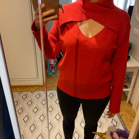 OUI ihana punainen lyhythihainen neule, vaikka jakun alle koko 40.