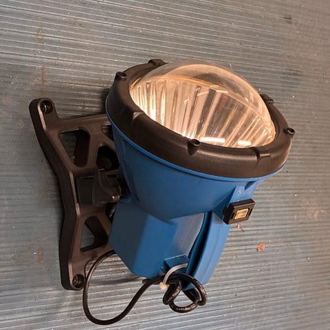 Uutta vastaava työmaav-/pihavalaisin 230V. 38W IP44. Säädettävä jalka / seinäkiinnitys teline. Kumikaapeli 130 cm shuko pistotulpalla. Voin lähettää postitse.