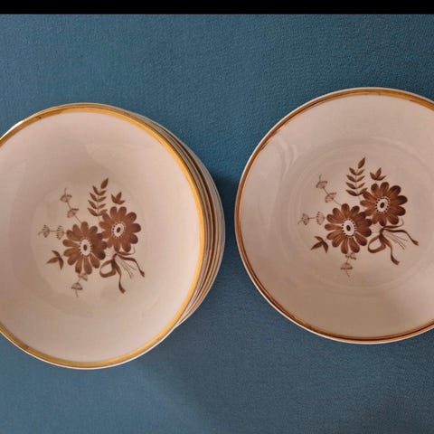 Kahvikuppeja ja pieniä lautasia 8kpl. Isoja lautasia 5kpl. Kahvipannua käytetty kolmesti, muut käyttämättömiä. Myrna, Arabia finland. Myyn toisen puolesta.