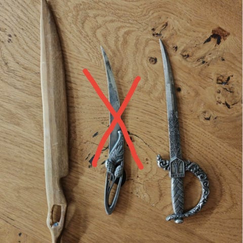 vanha paperiveitsi. hieno vanha paperiveitsi, kirjeveitsi. kultainen