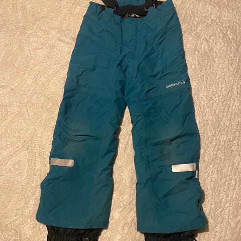 Myydään lasten Didriksons toppahousut koko 120, tumma sininen. Hieman kuluneet, lahkeiden heijastinnauhat ovat karkuteillä, muuten ehjät ja käyttökuntoiset.