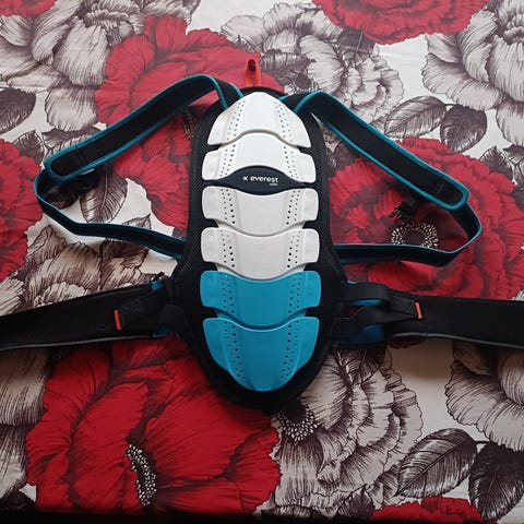 Myydään tarpeettomana kerran käytetty selkäpanssari lasketteluun. Koko S ( max 168cm).