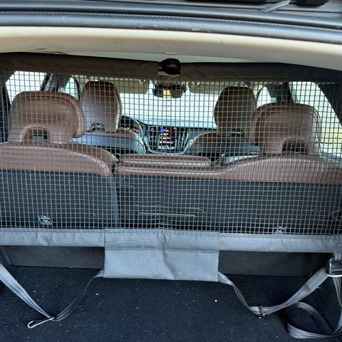 Kuvien pitkälti käyttämättömäksi jäänyt tavaratilan nailon suojaverkko