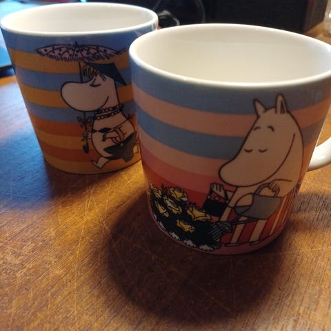 Myytävänä 2kpl ruusutarha muumimukeja vuodelta 2010. Mukit ovat käyttämättömiä ja niissä on tarra paikallaan.