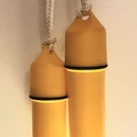 Kuvanmukainen muoviputkesta tehty kapseli, jonka sisällä vielä pienempi kapseli.