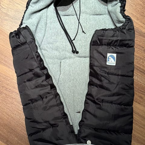 Myydään musta/harmaa Eisbärchen lämpöpussi. Hyvässä kunnossa. Pussissa aukot rattaiden vöille.