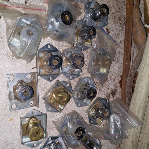 Kuvan käytetty kalustelukko kahdella avaimella.