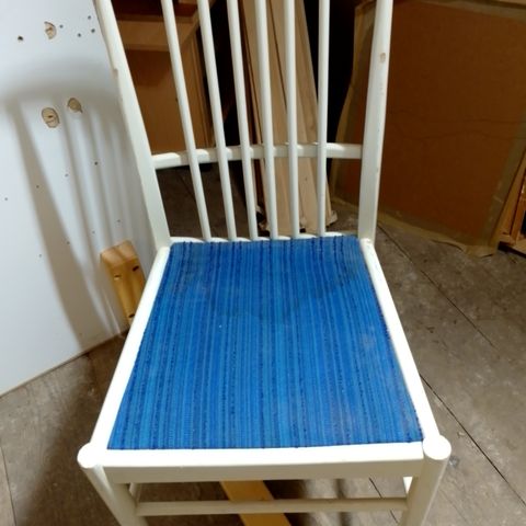 Valkoinen karmituoli päällinen tumman harmaa kunto hyvä