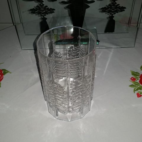 Iittala Kuusi koriste-esine, valmistettu lasista. Koriste-esineessä on metsäteemainen kuviointi ja se on suunniteltu koristeeksi tai keräilykohteeksi.