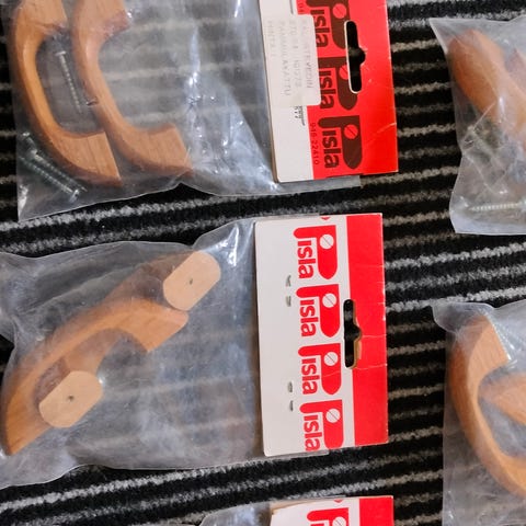 Myydään käytetty musta puinen veitsitukki, käytön merkkejä, toimiva, 5