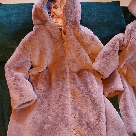 Kuvien mukainen tekoturkis. Ei kokomerkintää, koko 86 on arvio.