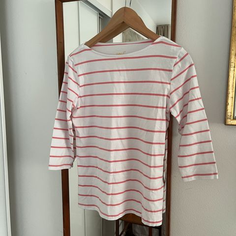 Pola holkkihihainen, mustavalkoinen kuviollinen paita. Kaareva helma. Lyhyt nappikaistale etupuolella. Avara pääntie. Kainalo-kainalo 112 cm. Takapituus 70 cm. 100 % viskoosi. Käyttämätön. Postimaksu 8,90e.