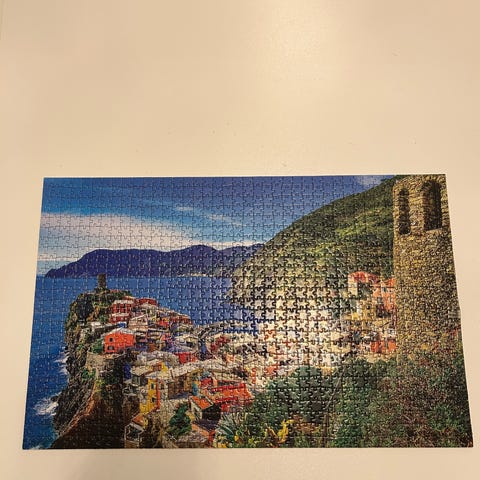 Italian meri aiheinen 1000 palan palapeli. Tässä palapelissä on normaalia palapeliä pienemmät palat. Pelistä tulee koottuna normaalia tonnista palista pienempi kooltaan. Kiva peli kasata jossain reissussa. Vähän on kulumaa muutamissa paloissa. Kaikki palat on pelissä tallella. Kiva kesäinen merimaisema. Meri, kalliot ja talot on kuvassa.