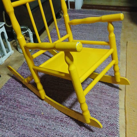 Myydään puinen lasten keinutuoli.