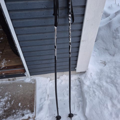 110cm laskettelusauvat. Siistit valkoiset, vähän lilaa.