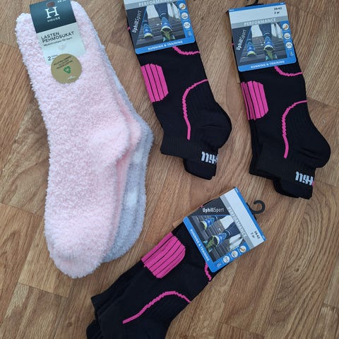 Uudet pidemmät harmaat sukat joissa poro ja lumihiutale kuvat. Sopii ainakin 38 tai 39