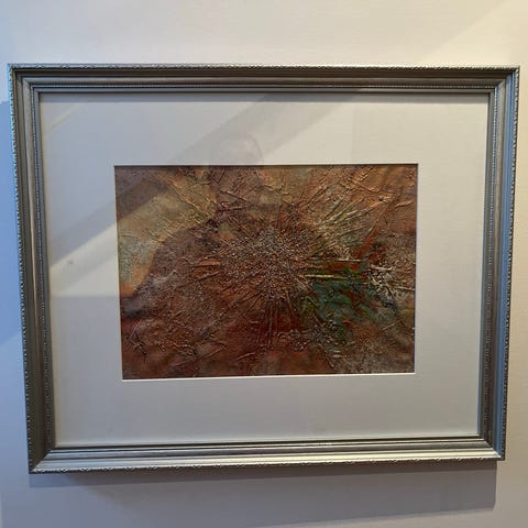 Kuva moitteettomassa kunnossa, kehykset ovat ottaneet osumaa. Lasi ok.