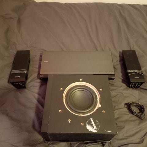Kuvien mukainen kotiteatteri järjestelmä.