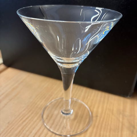 Retro henkinen värikäs coctail lasi. Tyyli on ainakin suoraan 80-luvulta. Sisustuksen ilopilkku, mutta myös juomien nauttimiseen. Ehjä, ei käytön jälkiä. Korkeus 22,5 cm ja halk. 9,5cm.