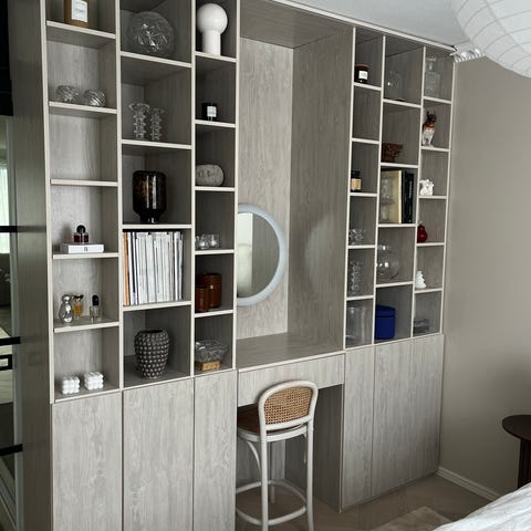 Edustava myymäläkaluste esim. lanka- tai muille tekstiileille joka laadultaan ja pinnaltaan uudenveroinen, uutena noin 2000 eur. Kaapistoon kuuluu useita eri osia, 10 kpl 100 x 40 cm hyllyjä, koukkuja etc. Metallinen kaapisto joka koostuu 100 cm paloista, kaapisto itsessään 300 cm x 200 cm, syvyys noin 40 cm antrasiitti/oranssi, alempi vedettävät kaapistot 3 kpl x 100 cm.