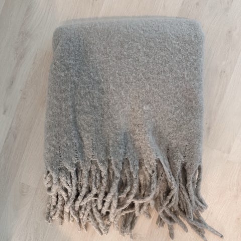 Tummanharmaa torkkupeitto/ viltti/ huopa. Koko n. 130x145 cm.