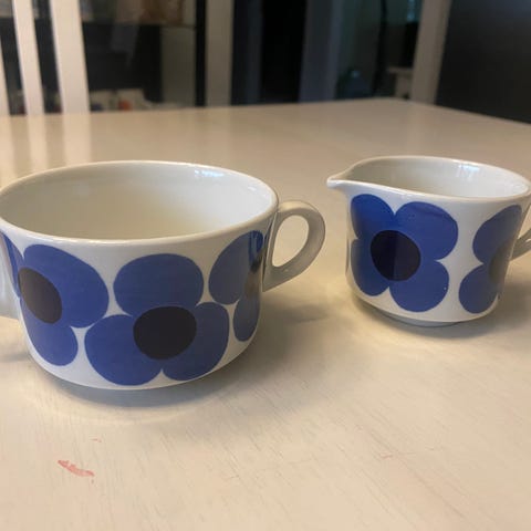 Myydään sokerikko ja kermakko kahvikannu virhettömässä kunnossa Arabia hopearaitaa.nouto tai postitus.