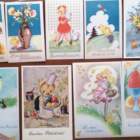 Vanhat kulkemattomat pääsiäiskortit 7 kpl sis. postit