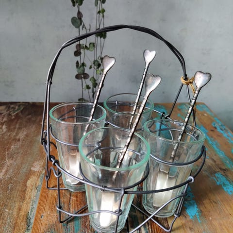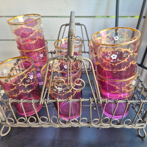 Myyn kuvien Madam Stoltz lasit telineessä.