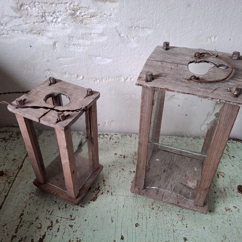 Myydään uusia puisia käsintehtyjä lyhtyjä.