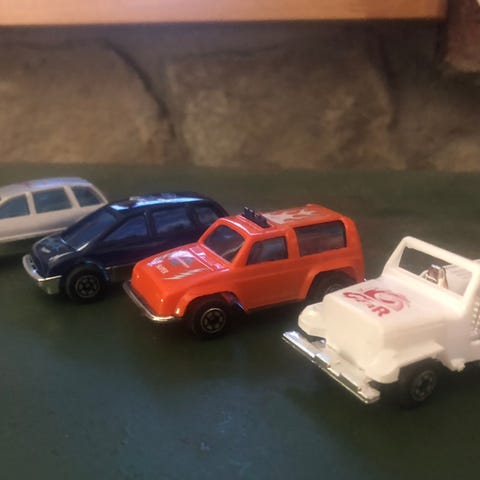 4 pientä muoviautoa, jotka ovat ehjiä ja kaikkien pyörät pyörivät. Pienin on 3,5 cm ja isoin n. 6 cm pitkä. Ne voi hakea tai voin lähettää. Hinta on 0,5 /kpl tai kaikki neljä 2 euroa. Postitus 2,75 € eli yksi postimerkki.
