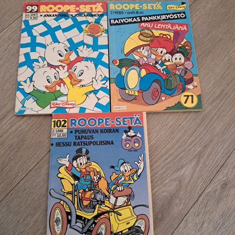 Kuvan luetut Roope-Setä kirjaset/taskukirjat/sarjakuvat/taskulehti/