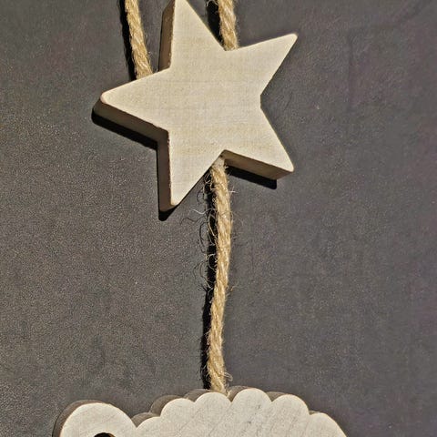 Aarikka teline nipsulla, lintukoristeet. Puuta.