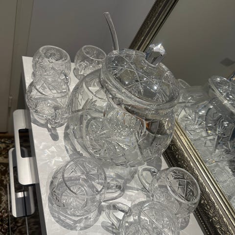 Kuvan mukainen kristallinen booliastiasto käyttämätön. Postitus tai ToriDilli.