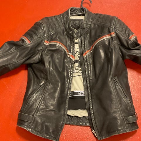 Naisten tyylikäs ajotakki kokoa 42 (oikein hyvä norm 38-40 kokoiselle), lyhyt style malli, harmaa-musta kelt korostuksilla, selkäpanssari sekä olka- ja kyynärsuojat paikallaan. Vetoketju uusittu suutarilla, kuin uusi nyt. Samassa kunnossa kuin kuvassa, ei käytetty sen jälkeen.