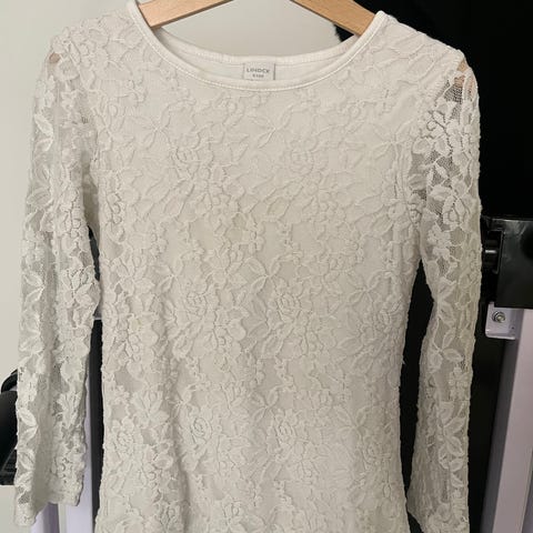 Kaunis valkoinen / paljetit - pitsitys Lindexin kauluspaita